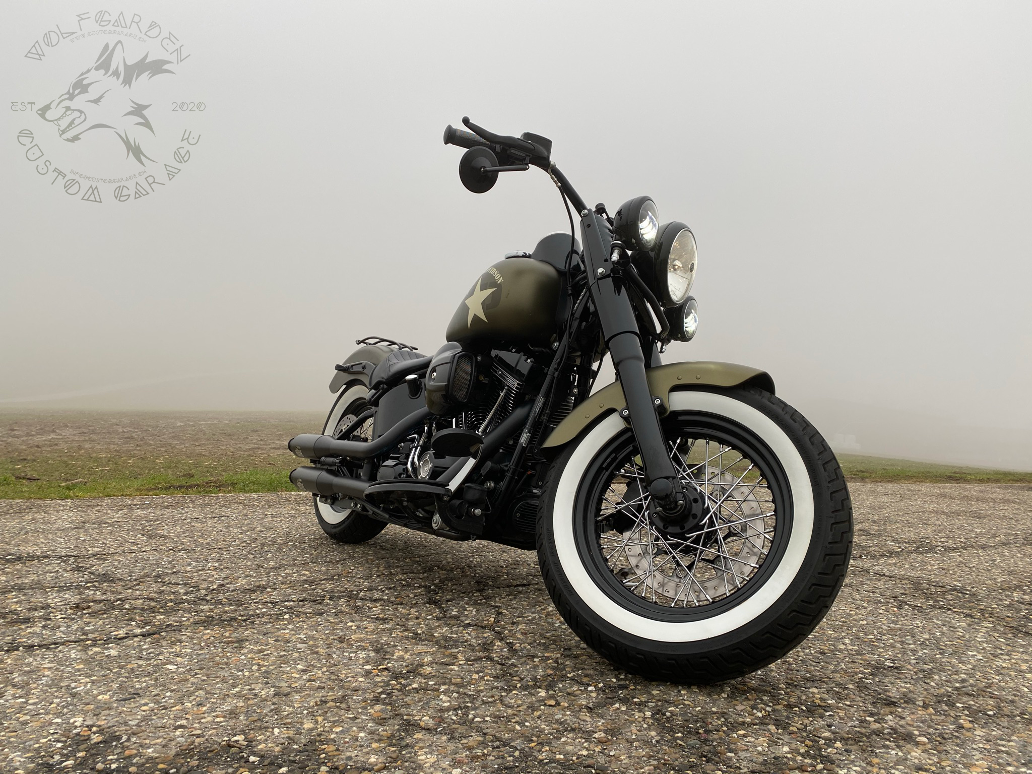 „Die Lackierung in Olive Gold Denim mit dem weißen Stern am Tank erinnert an die WLA Militärmaschinen, die Harley-Davidson im Zweiten Weltkrieg hergestellt hat. Die Softail Slim S ist eine Hommage an die Bobber, die nach dem Krieg aus den Military Bikes entstanden sind“, erklärt Brad Richards, Harley-Davidson Director of Styling. „Diese Custombikes, die überall im Land in Garagen und Hinterhöfen entstanden, bildeten den Ursprung des Bobber-Styles und inspirieren unsere Designer bis in die Gegenwart.“